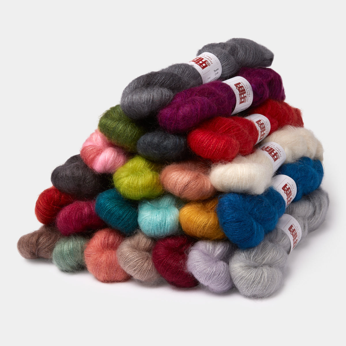 Because it is NFC, their colorways are luscious, and we have been amazed by how little this yarn sheds (usually one of our pet peeves with mohair). We know you'll love Loft whether by itself or marled with another yarn to add halo and depth of color.