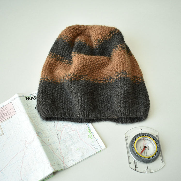 We're excited to introduce the Reese Slouchy Beanie Kit, our latest collaboration with James Cox Knits. It's a seed stitch beanie knit in the round with muted striping, and its modern silhouette means it will be perfect for all of your adventures.
