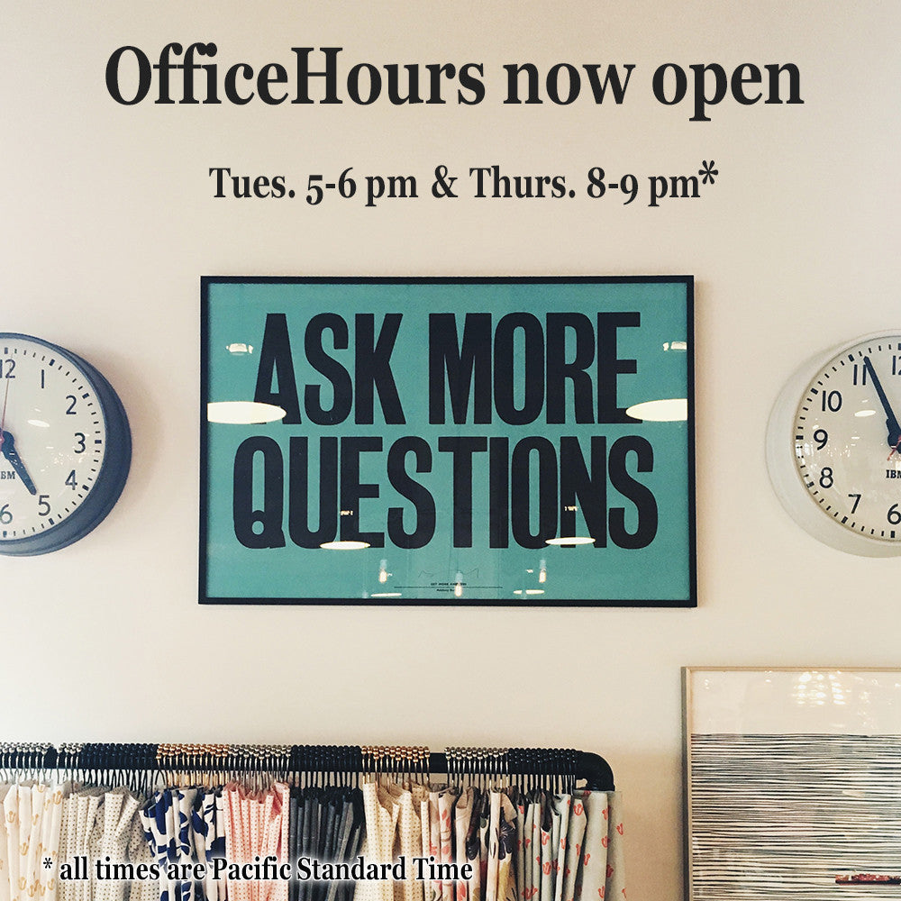 OfficeHours is a weekly online forum; it'll be every Tuesday from 5-6pm and Thursday 8-9pm (pacific time). You'll need to sign up to access the chat session, and you can do so by CLICKING HERE.