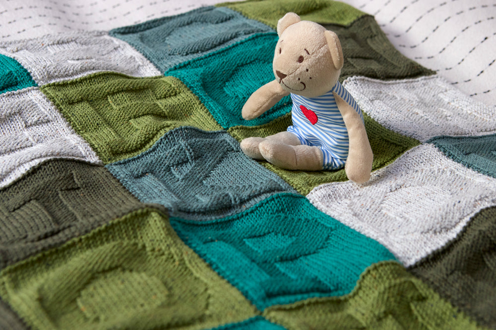 This exclusive design for Row House by Erika Knight will teach beginners how to knit an heirloom blanket for a cherished baby. The blanket is made up of thirty squares, each worked in simple knit and purl stitches with a garter stitch edge. It's available as a Design or as a Kit - you choose.