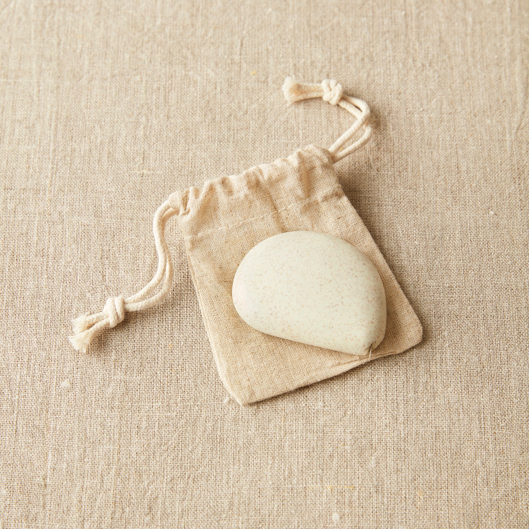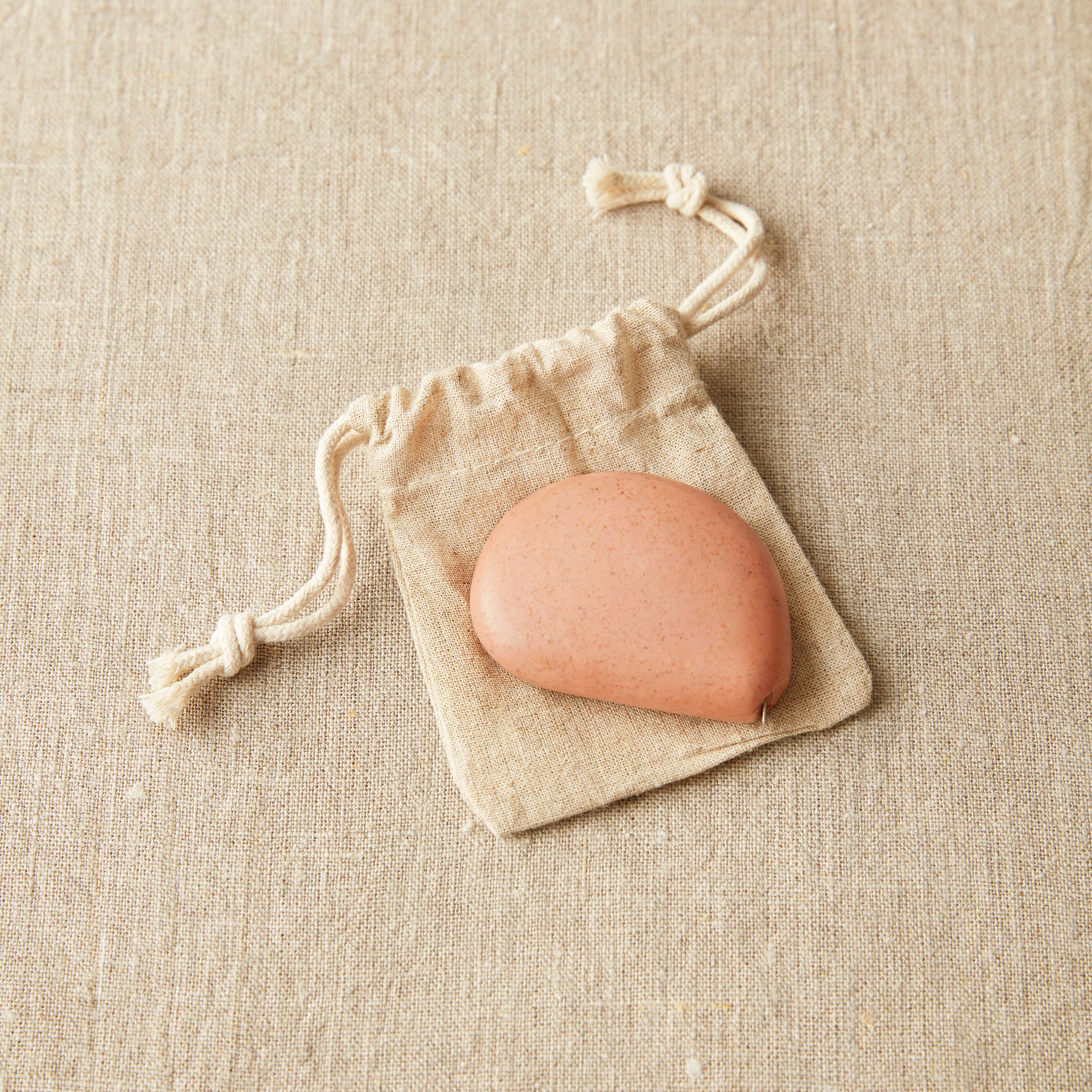 Each tape measure is packaged in a reusable linen drawstring bag to minimize packaging waste.