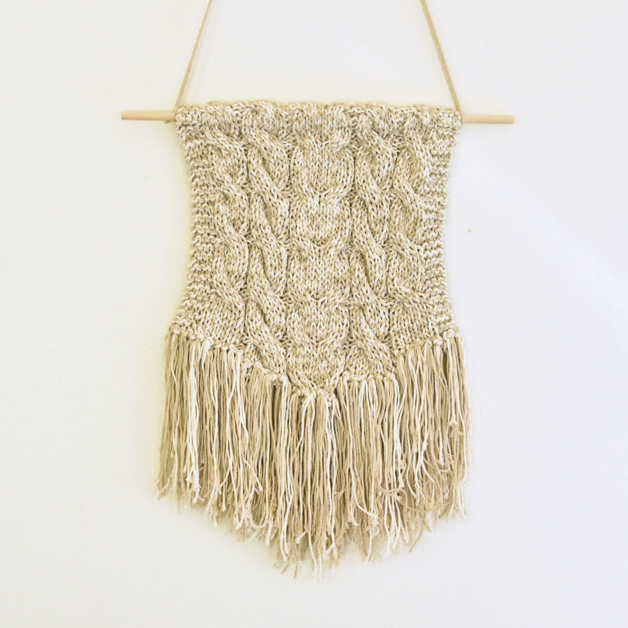 The Seville is a cabled wall hanging perfect to add some warmth to your home. It's designed by Roni Halloran, and is a great project for knitters who want to learn how to make cables. It's designed with Erika Knight Studio Linen, with two strands held together, so you can mix colors for a marled effect or use a single color.