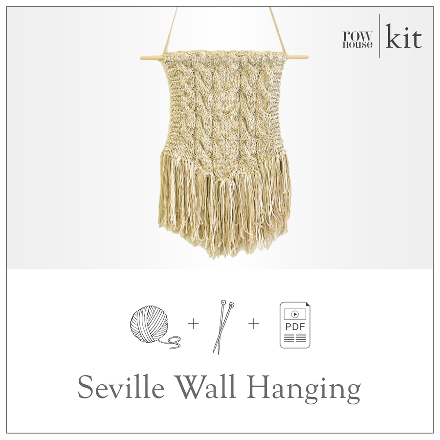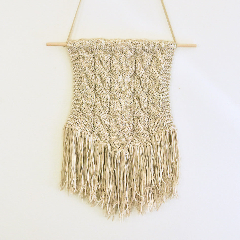 The Seville is a cabled wall hanging perfect to add some warmth to your home. It's designed by Roni Halloran, and is a great project for knitters who want to learn how to make cables. It's designed with Erika Knight Studio Linen, with two strands held together, so you can mix colors for a marled effect or use a single color. Our sample is in Bone and Milk held together.