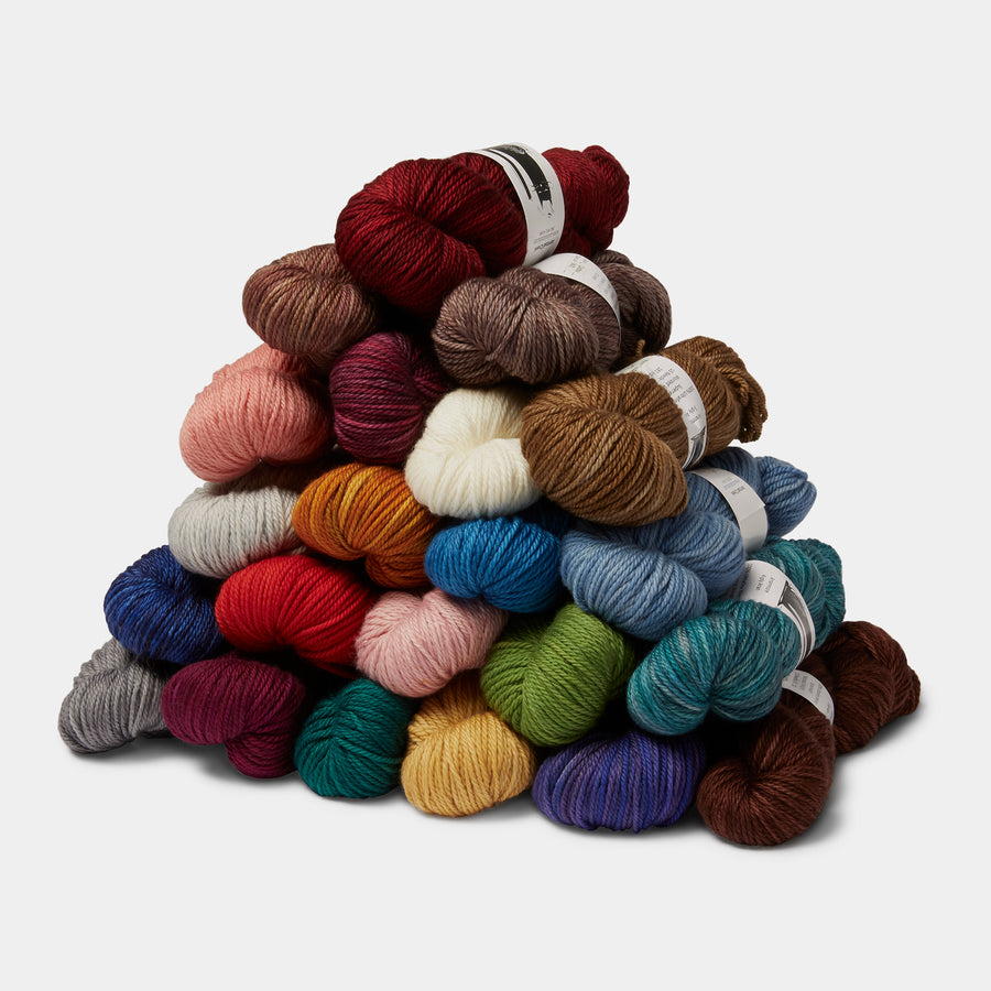Arranmore is a 4-ply 100% Ultrafine Merino wool superwash.  It is an Aran weight yarn hand dyed by Jorstad Creek.  Jorstad Creek dyes in its Olympia, Washington studio and is known for its rich, layered colorways.
