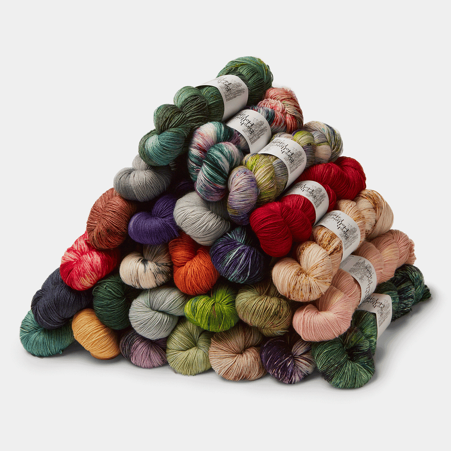 Sylvia Sock is a speckled, hand-painted yarn, and Birch Hollow develops their colorways inspired by nature and literature. Sylvia Sock is named after Sylvia Plath, author of "The Bell Jar" and "Lady Lazarus."