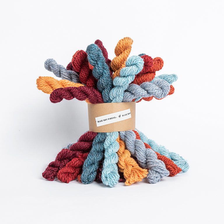 Blue Sky Fibers' Woolstok Bundles are designed for crafting of all kinds; knit, crochet, weave, felt and more. With each mini hank of Woolstok Worsted measuring at 12 yards each (10 meters), there are endless ways for these little bundles to make a big presence in your life. Every bundle includes 3 mini-hanks each of 7 different shades giving you plenty of options to explore color. Pick your favorite colorway and begin creating. Project ideas and links are below, if you are looking for inspiration.