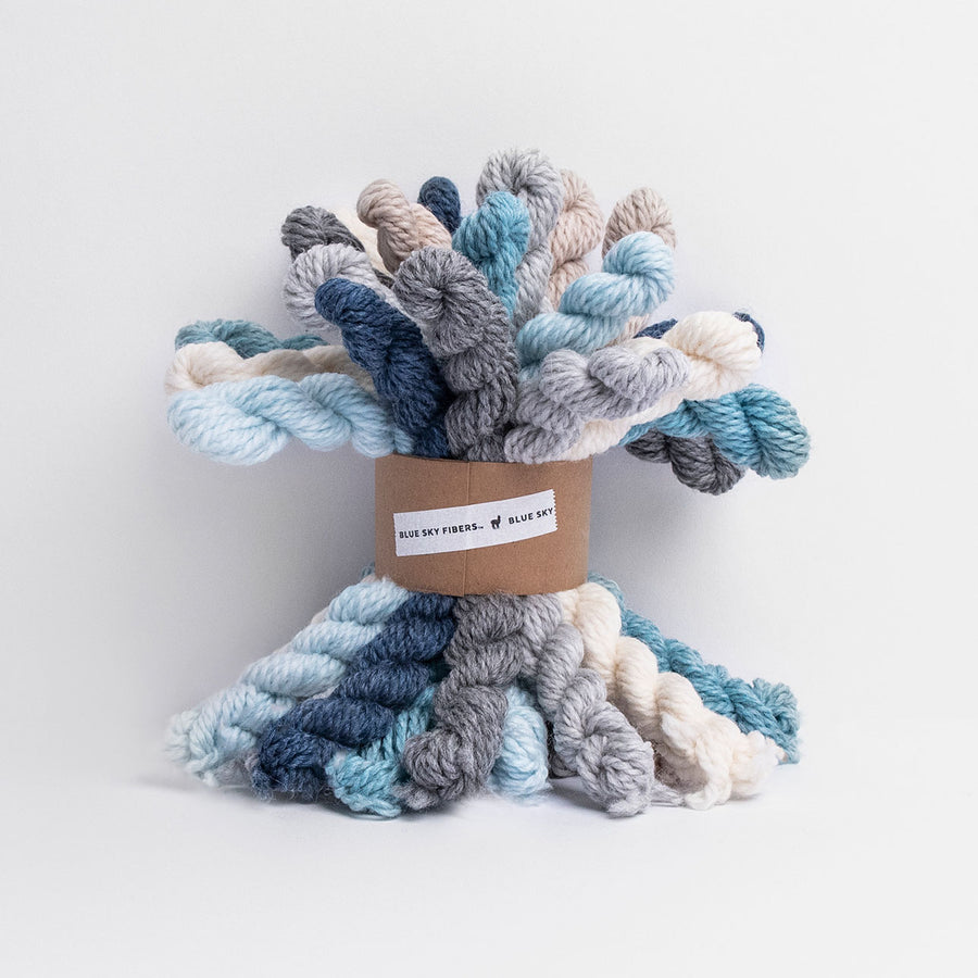 Blue Sky Fibers' Woolstok Bundles are designed for crafting of all kinds; knit, crochet, weave, felt and more. With each mini hank of Woolstok Worsted measuring at 12 yards each (10 meters), there are endless ways for these little bundles to make a big presence in your life. Every bundle includes 3 mini-hanks each of 7 different shades giving you plenty of options to explore color. Pick your favorite colorway and begin creating. Project ideas and links are below, if you are looking for inspiration.