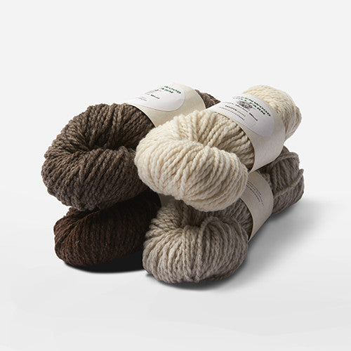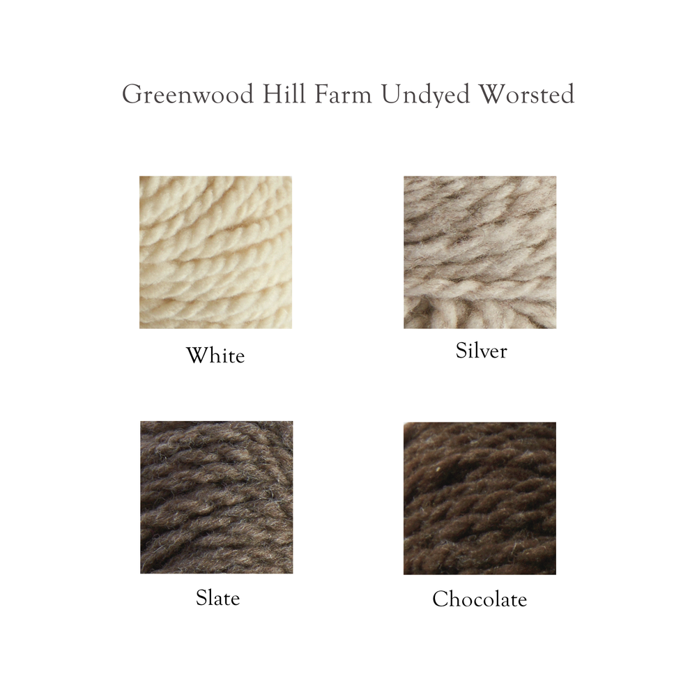 Greenwood Hill Farm Worsted is a worsted weight yarn made from Greenwood Hill Farm's registered Merino sheep flock in Hubbardston, Massachusetts. It is 100% Merino wool. Greenwood Hill yarns are undyed; they create their four colors by mixing the two colors of wool their flock of sheep produce in various ratios.