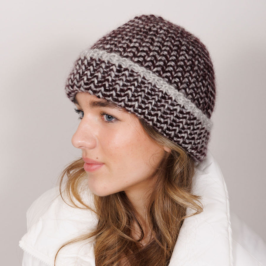 The Rose Avenue Beanie is a faux-brioche stitch beanie knit in two colors.  It is written in two sizes to fit most adults (15 1/4" or 17 1/4" circumference, unstretched).
